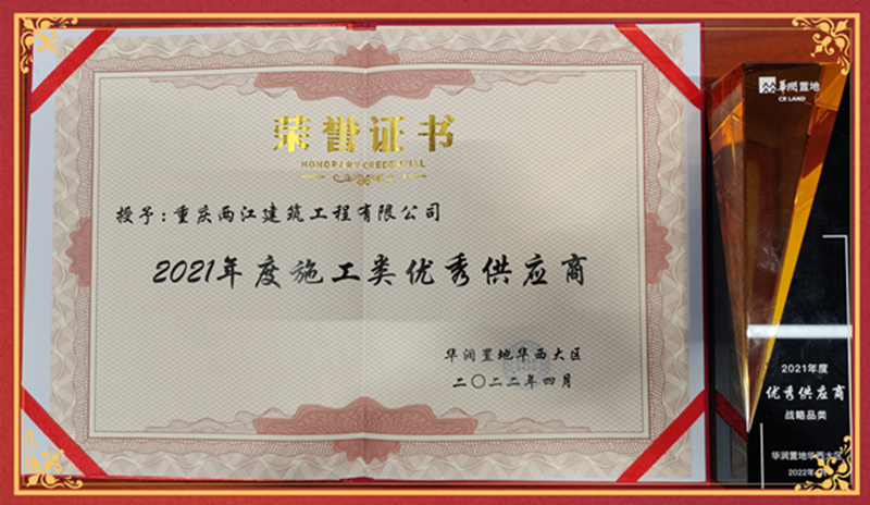 在2021年度交付评估中获得了华润置地华西大区年度住宅优秀交付奖“金奖”。