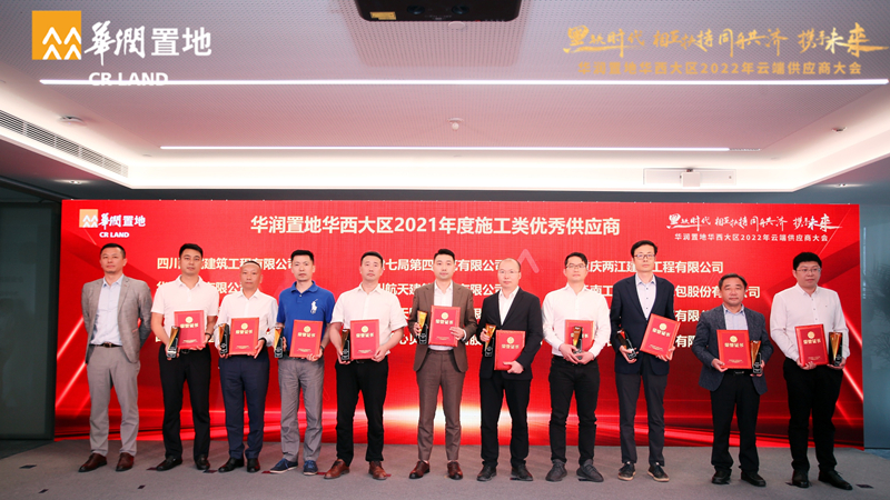 2022年4月29日,我司董事长黄金海及原贵阳华润悦府项目经理宋荣海,应邀参加华润置地华西大区2022年度云端供应商大会,并荣获华润置地华西大区“2021年度施工类优秀供应商奖”。